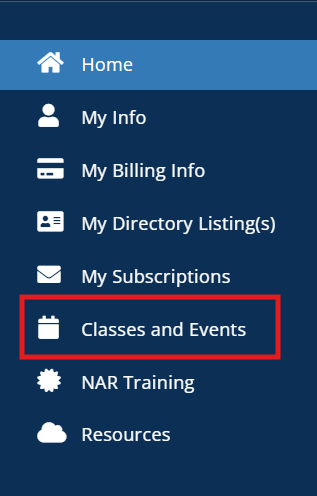 Once you have signed in to your Member Hub account, use the menu on the left side of the screen to click on Classes and Events.